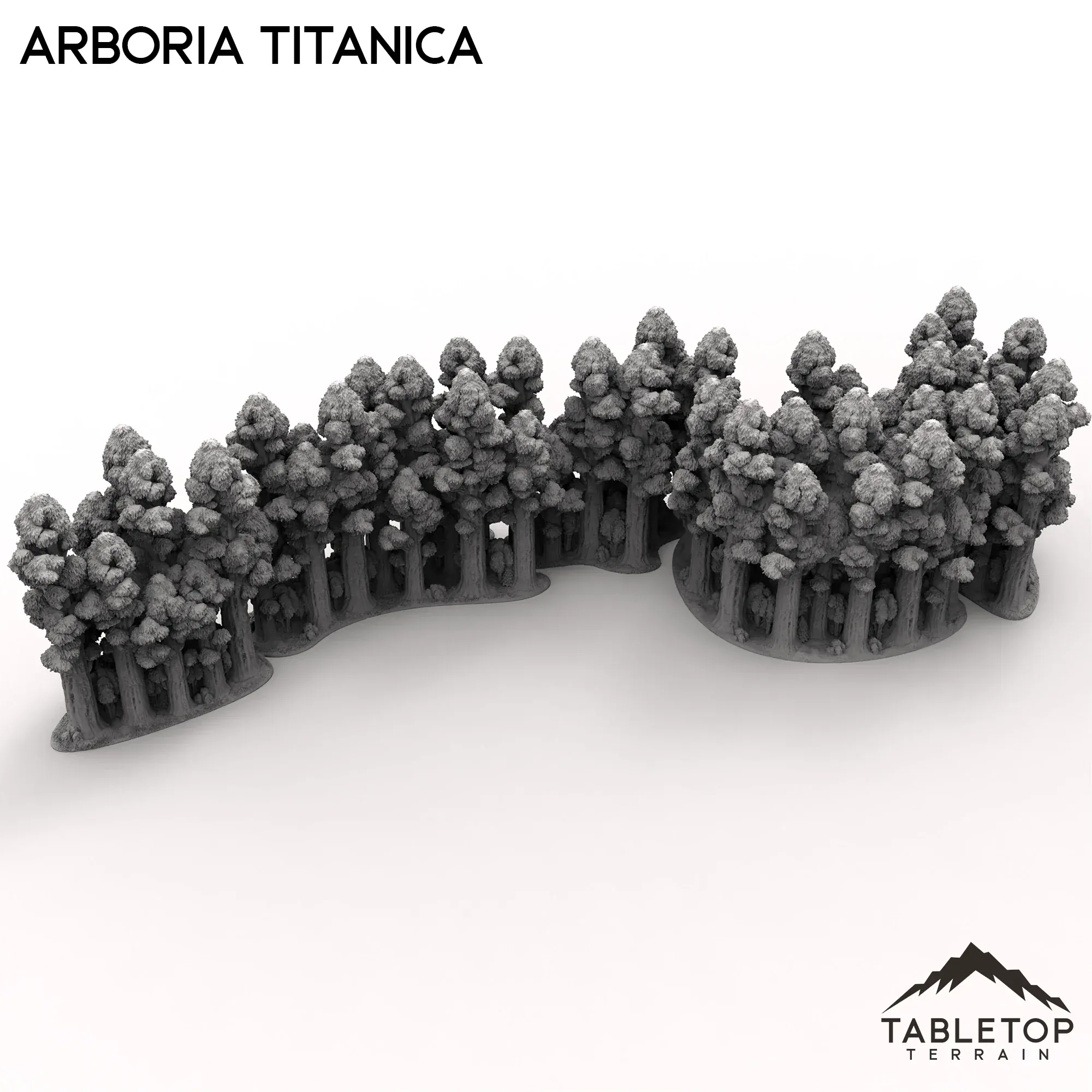 The Arboria Titanica is a collection of massive trees, made for 6-8mm tabletop games. Each grouping of tress is unique with 5 different total sets. Each set can be placed together, interlocking in a variety of ways to create a solid barrier of forest. Each and every tree is highly detailed from the base of the roots to the tips of the branches.