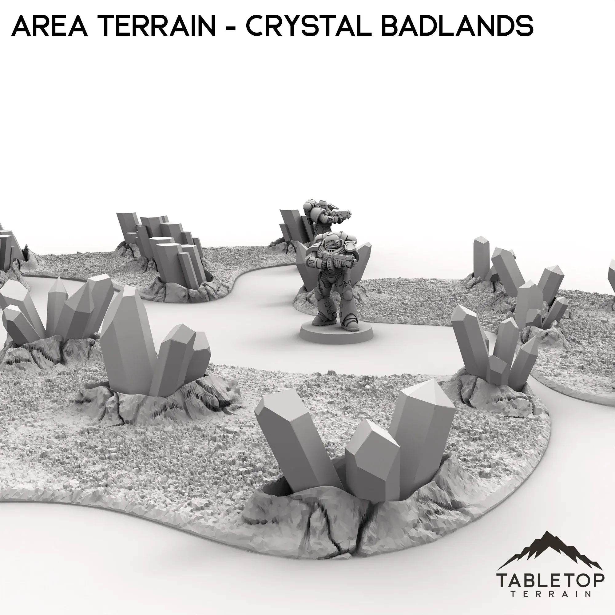 4 separate platforms of land with clusters of growing crystal, the Area Terrain set is designed for any tabletop. The growth of eerie crystals scatter the landscape, adding an unnatural feel to the ground itself. This set contains all 4 sections of land, and is made to work with any scale of game. Consider combing them with other sets from the Crystal Badlands collection to fill out your tabletop!