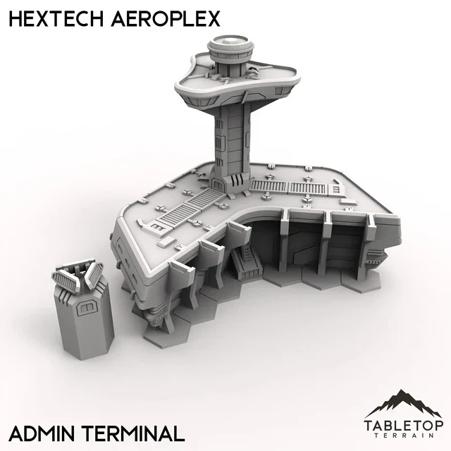 HEXTECH Aeroplex Center is a collection of buildings and runways for creating an immersive air and space center for 6mm-scaled tabletop games. The collection can but bought part-by-part, or in a few different bundles that come with a discount built-in. The styling of the Aeroplex set is made to match the look and feel of the Trinity City collection, allowing for massive combinations for a sprawling city. The "Fuel Stations" item in this collection have connections that match the pipes from both the "Power Complex" and "Industrial Fluidworks" collections on our store if you'd like to connect them to the Aeroplex.