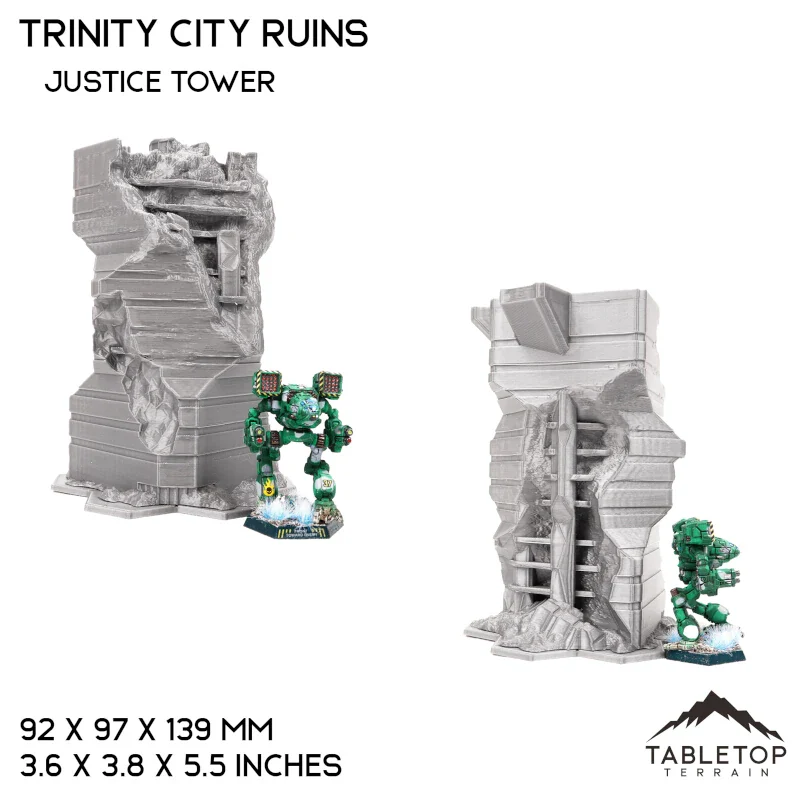 - Justice Tower - 92x97x139mm / 3.6x3.8x5.5 inches.