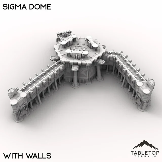 The Sigma Dome, designed by Thunderhead Studios, is an expansion to the Trinity City HEXTECH set. The set is comprised of multiple parts making up one large, open interior dome, made to hold a variety of minis and mechs inside. The Sigma Dome is the perfect addition to the Borealis Dropship, the Curtain Walls, or the City Streets HEXTECH collections!